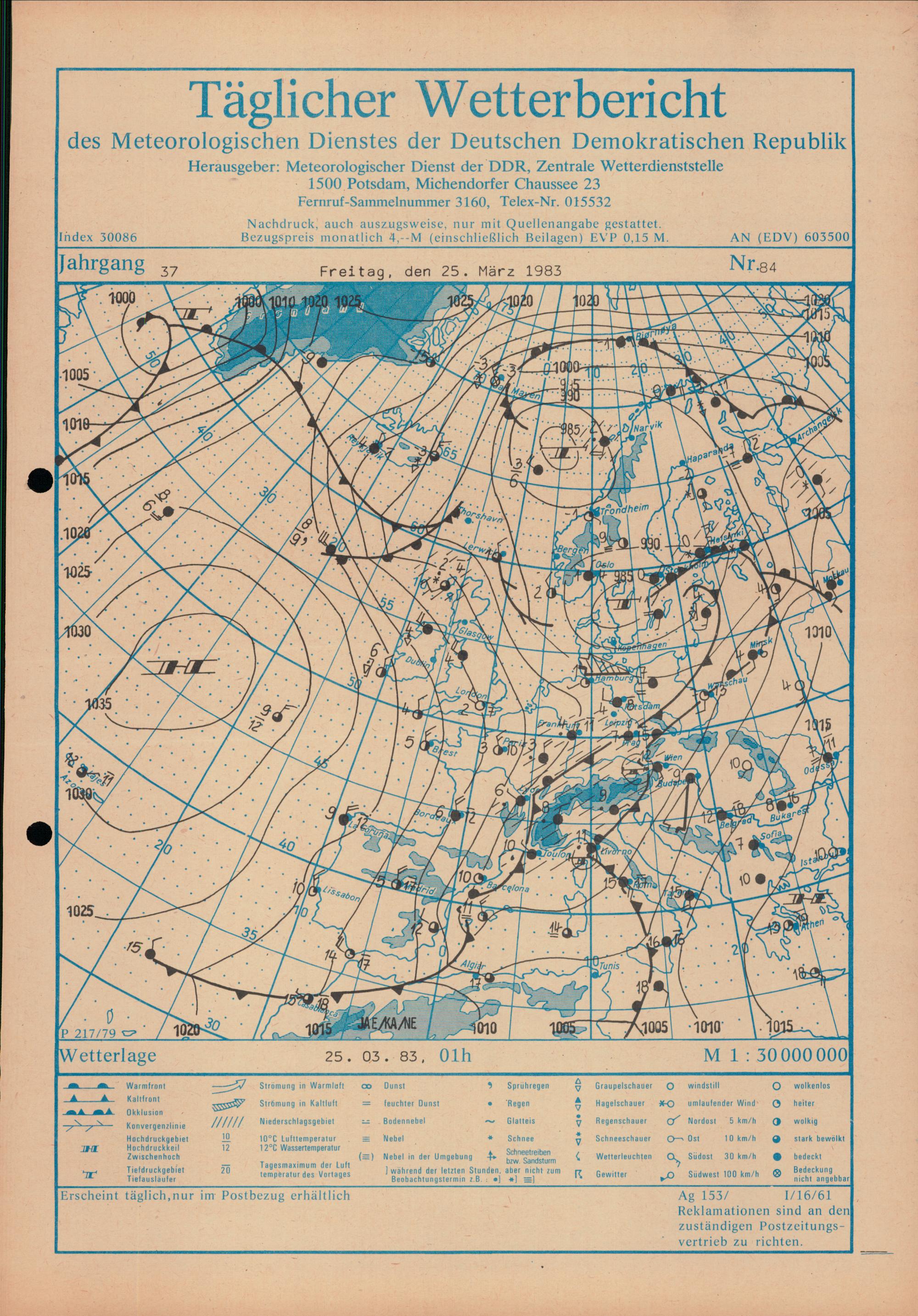 Täglicher Wetterbericht des Meteorologischen Dienstes der Deutschen Demokratischen...