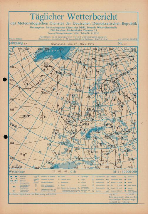 Täglicher Wetterbericht des Meteorologischen Dienstes der Deutschen Demokratischen...
