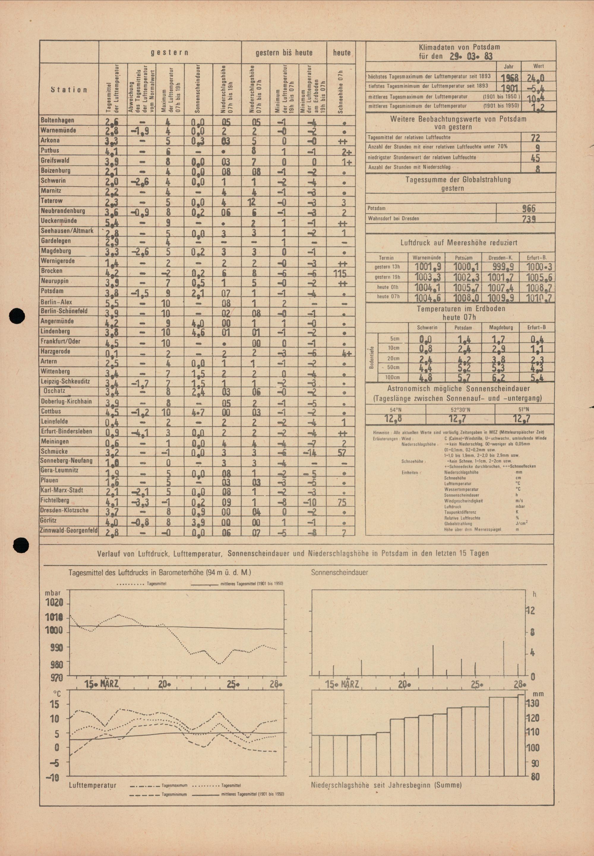 Täglicher Wetterbericht des Meteorologischen Dienstes der Deutschen Demokratischen...