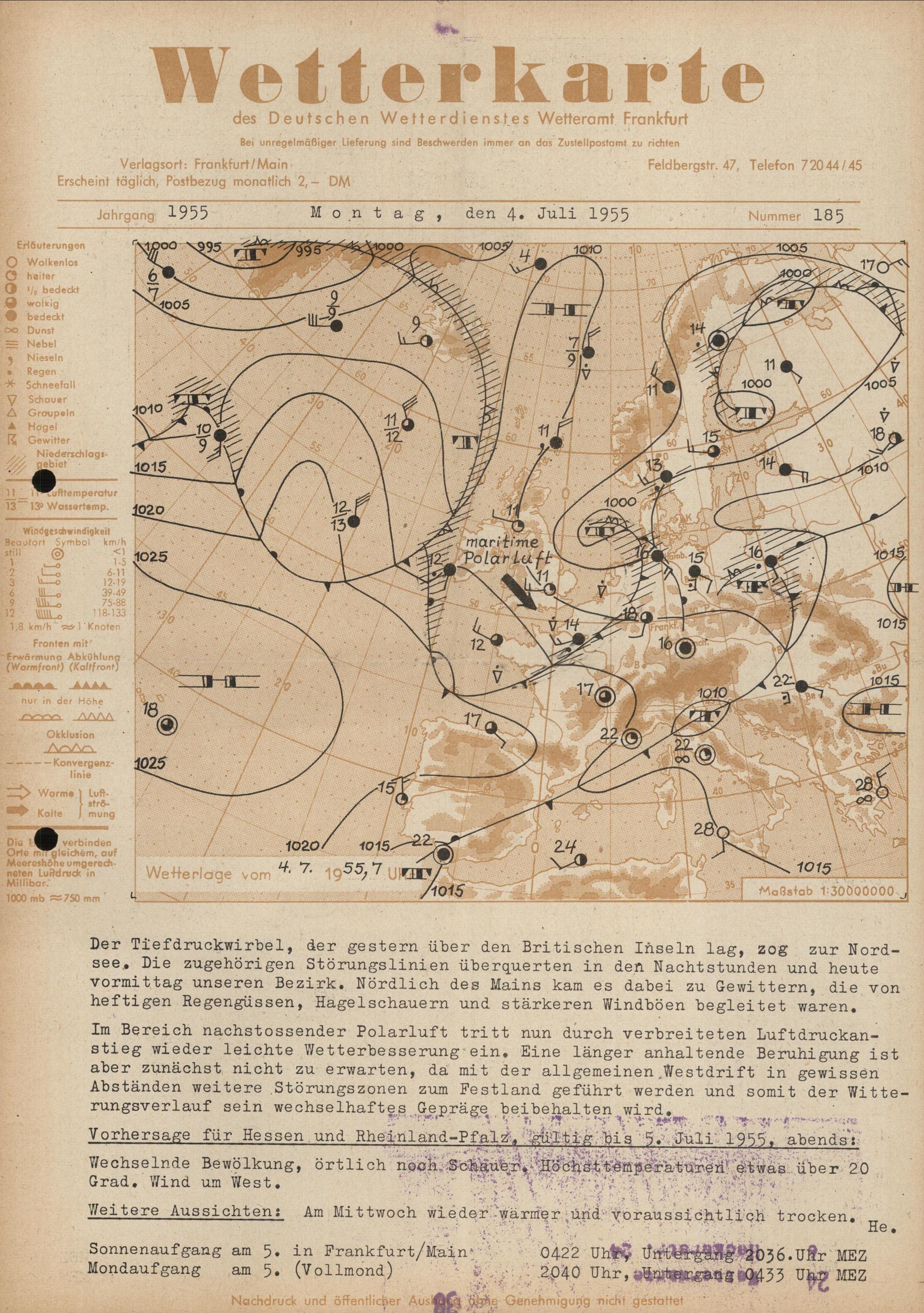 Wetterkarte des Deutschen Wetterdienstes, Wetteramt Frankfurt