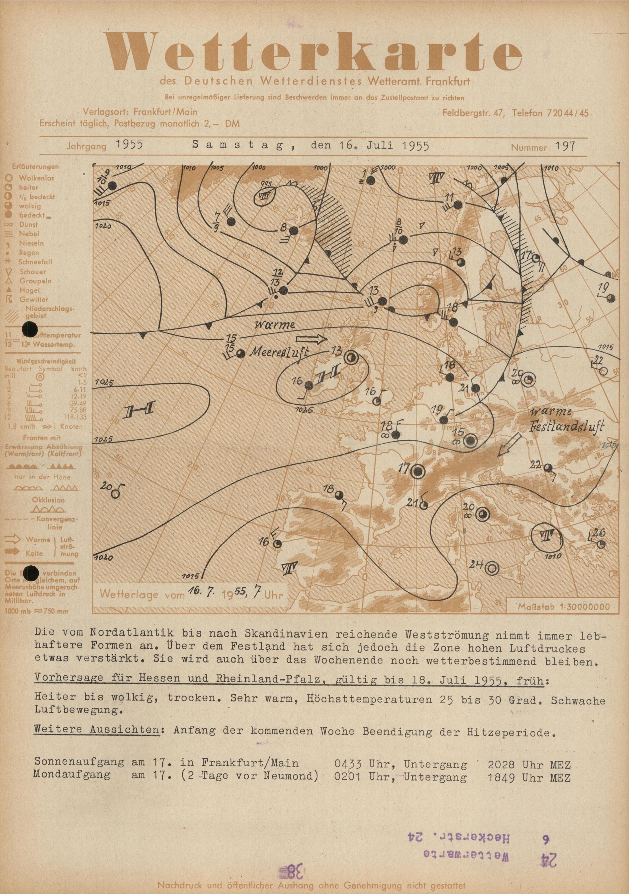 Wetterkarte des Deutschen Wetterdienstes, Wetteramt Frankfurt