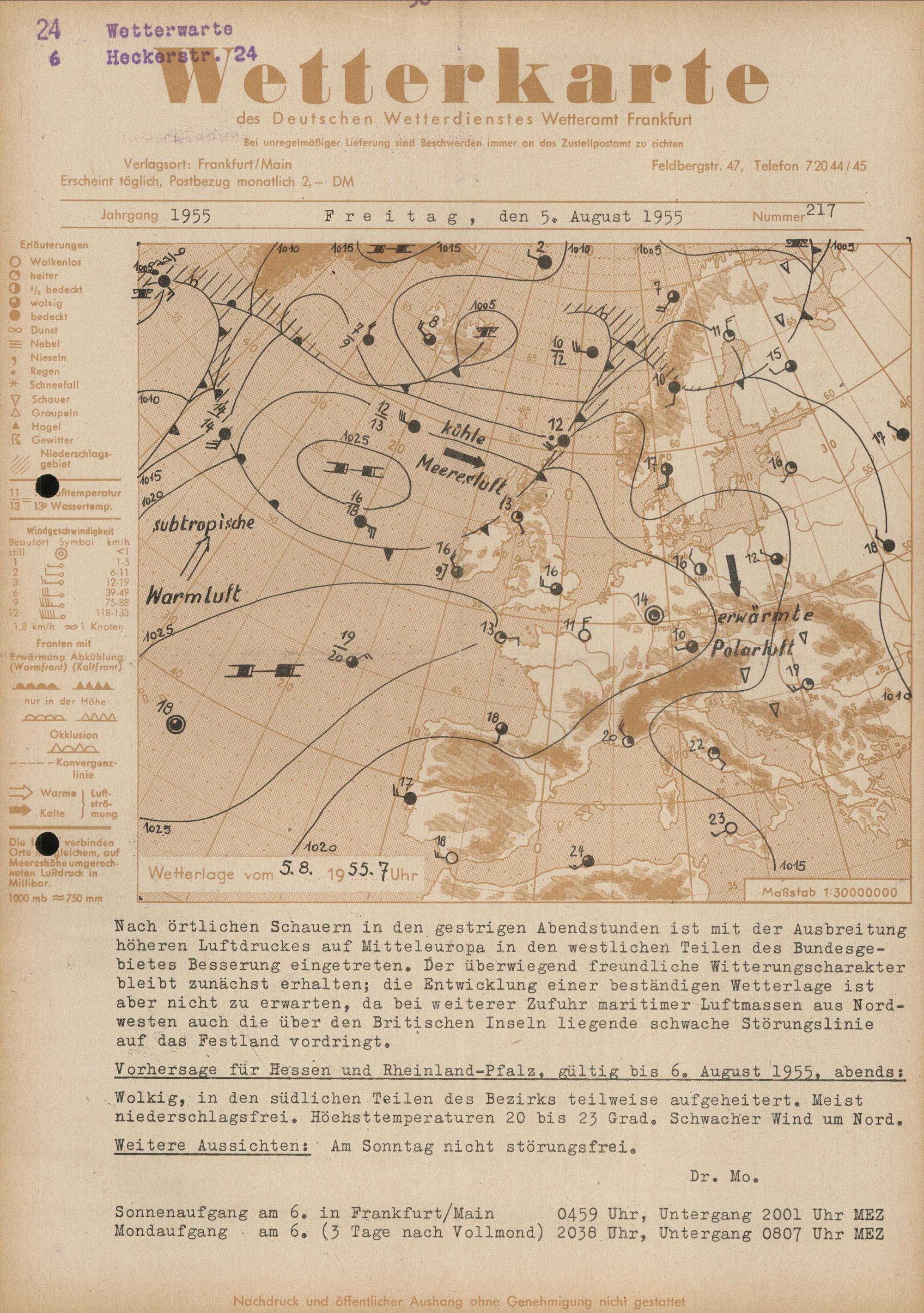 Wetterkarte des Deutschen Wetterdienstes, Wetteramt Frankfurt