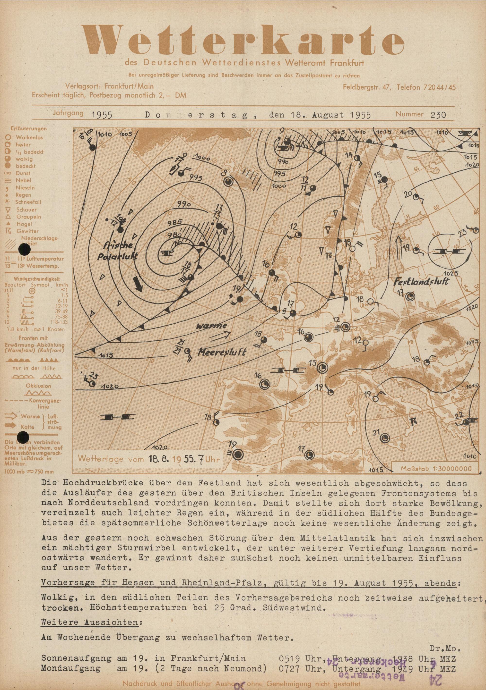 Wetterkarte des Deutschen Wetterdienstes, Wetteramt Frankfurt