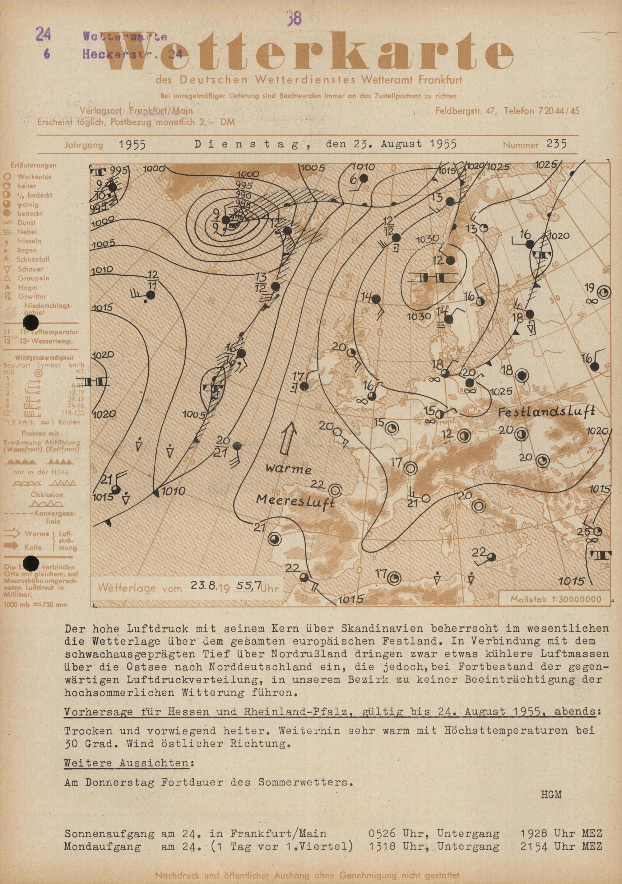 Wetterkarte des Deutschen Wetterdienstes, Wetteramt Frankfurt