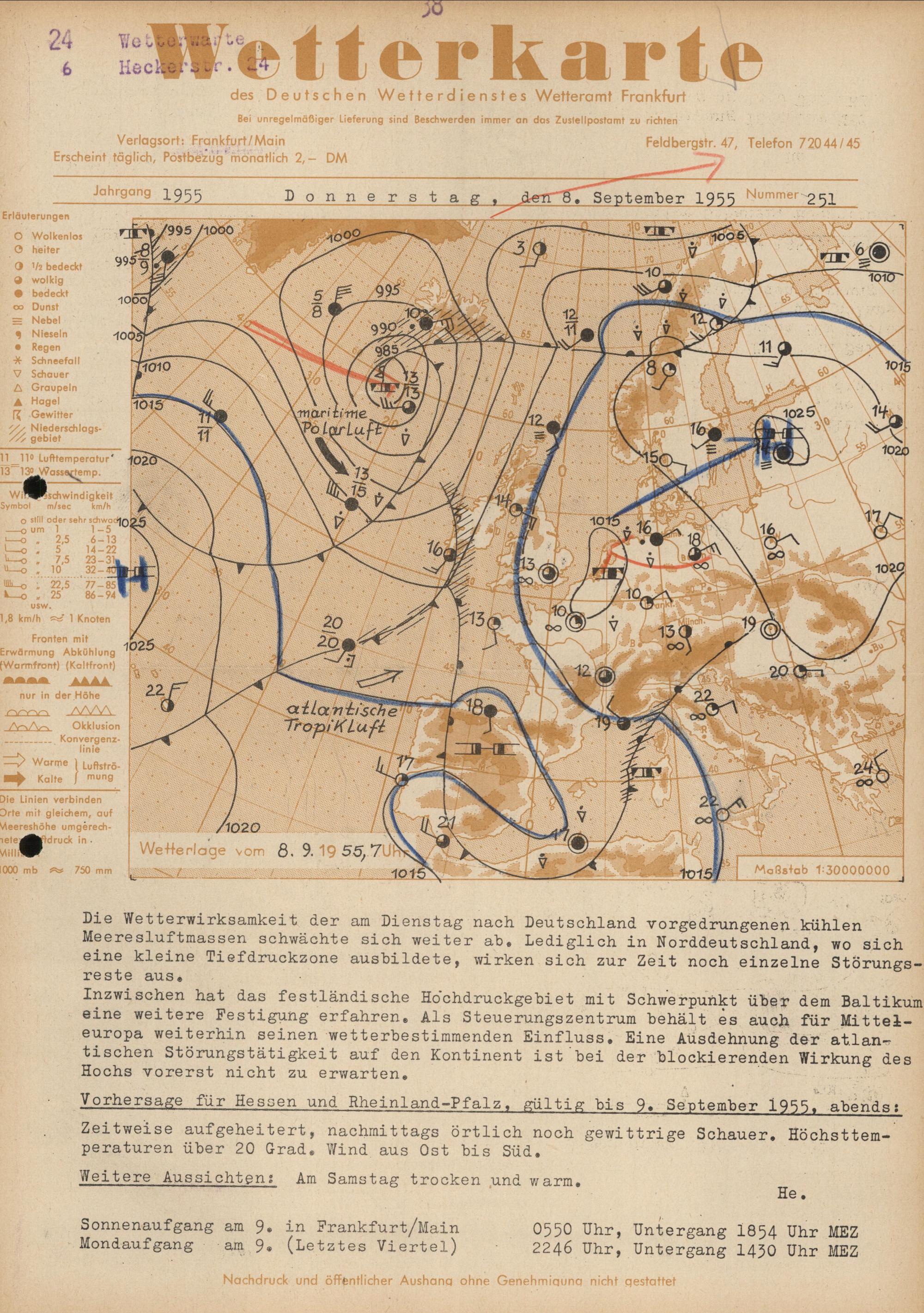 Wetterkarte des Deutschen Wetterdienstes, Wetteramt Frankfurt
