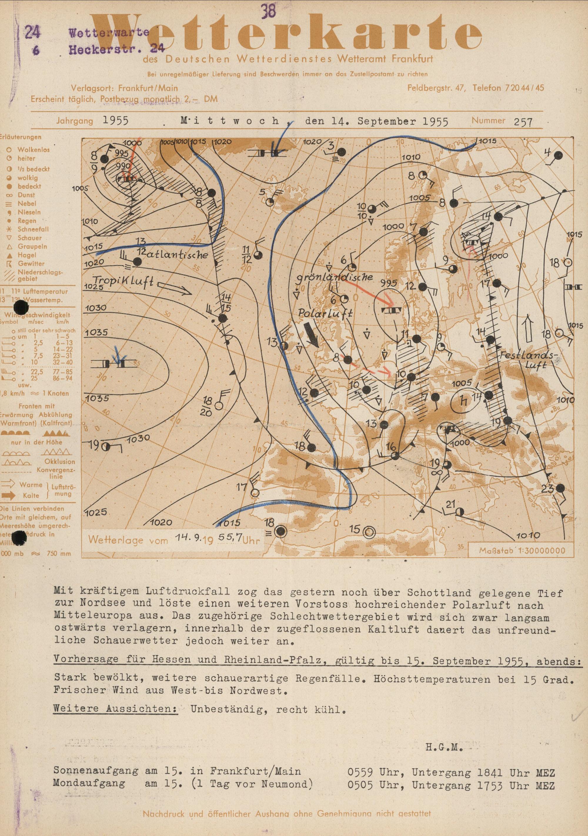 Wetterkarte des Deutschen Wetterdienstes, Wetteramt Frankfurt