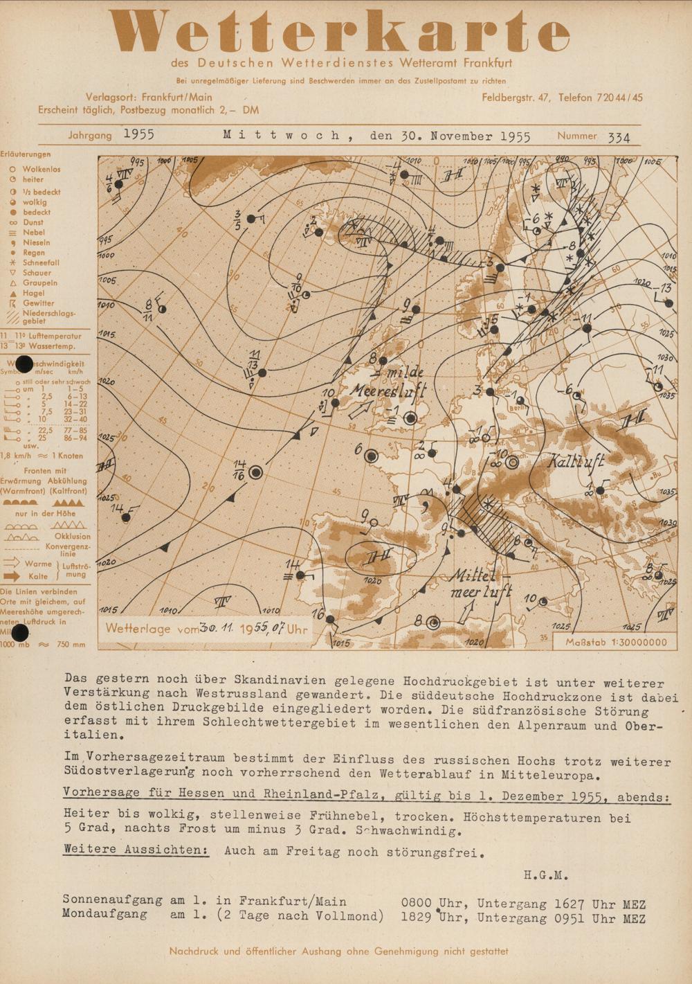 Wetterkarte des Deutschen Wetterdienstes, Wetteramt Frankfurt