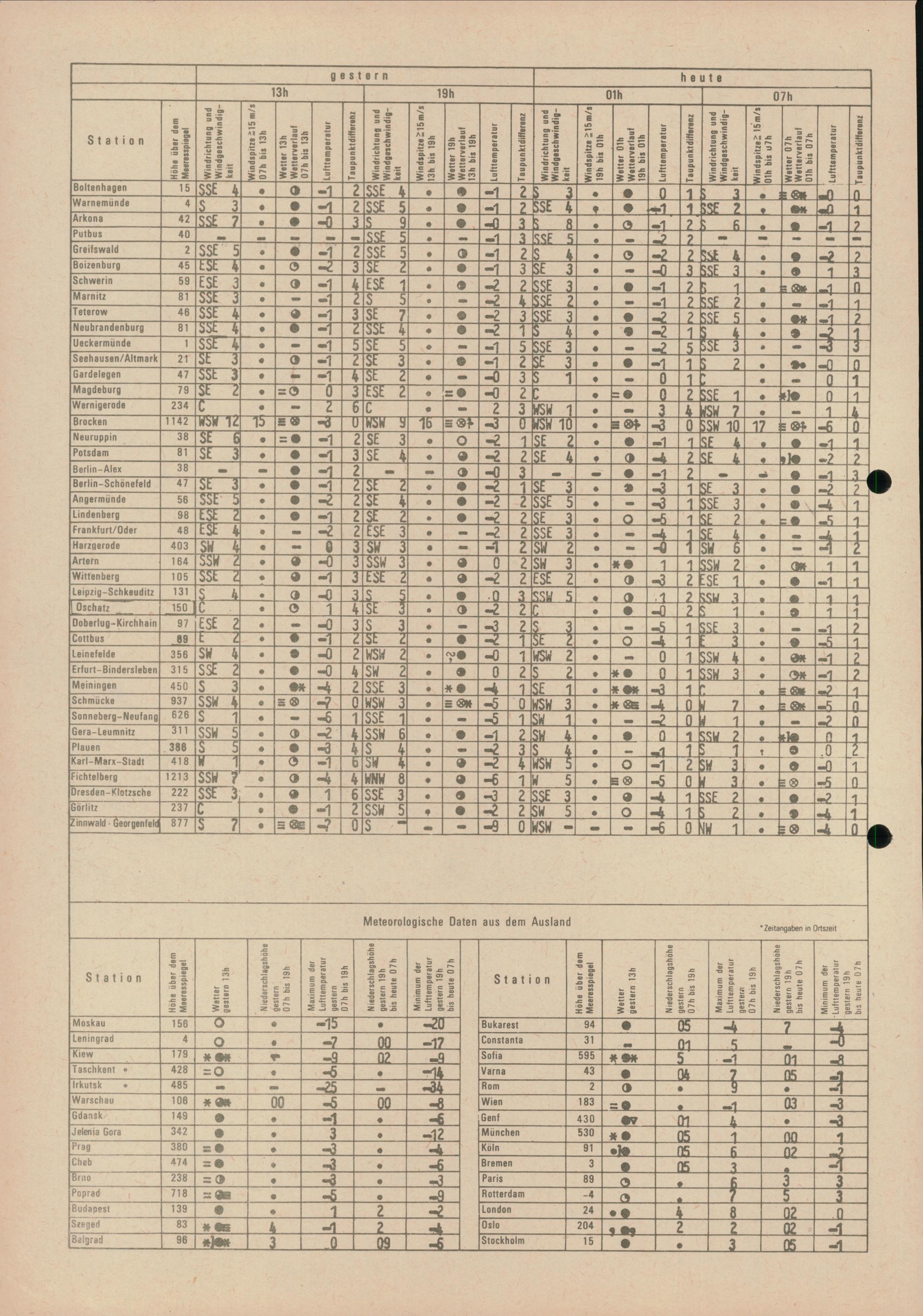 Täglicher Wetterbericht des Meteorologischen Dienstes der Deutschen Demokratischen...