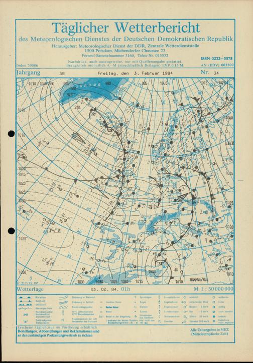 Täglicher Wetterbericht des Meteorologischen Dienstes der Deutschen Demokratischen...