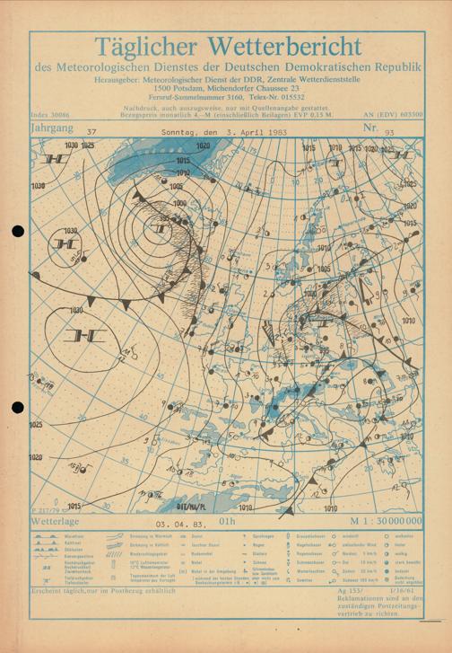 Täglicher Wetterbericht des Meteorologischen Dienstes der Deutschen Demokratischen...