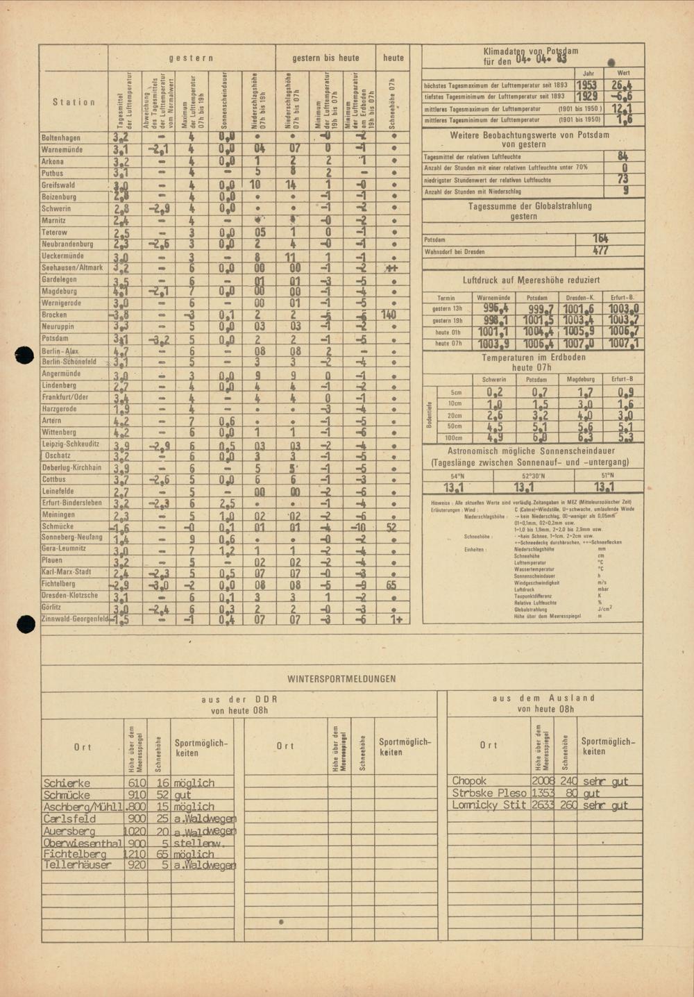 Täglicher Wetterbericht des Meteorologischen Dienstes der Deutschen Demokratischen...