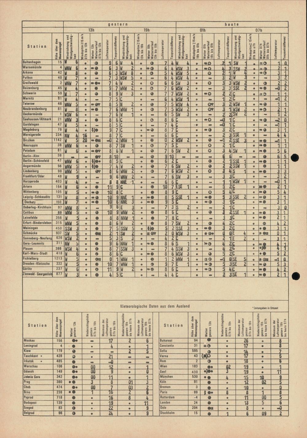 Täglicher Wetterbericht des Meteorologischen Dienstes der Deutschen Demokratischen...