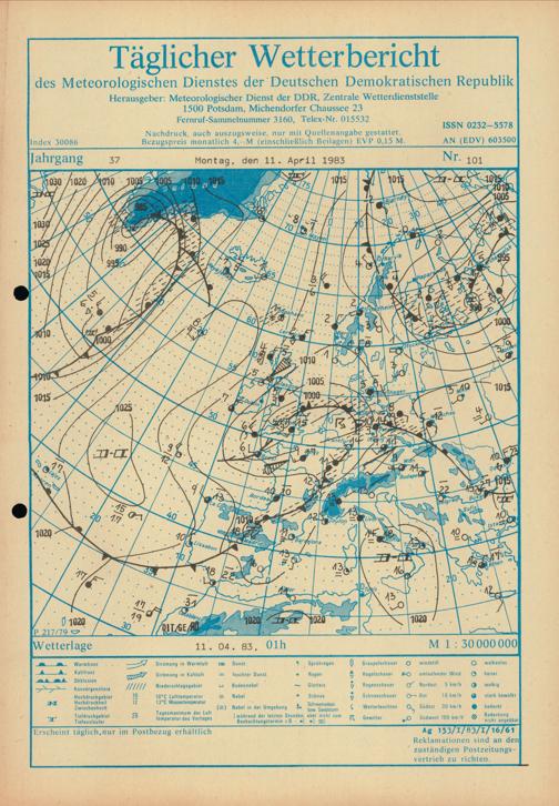 Täglicher Wetterbericht des Meteorologischen Dienstes der Deutschen Demokratischen...