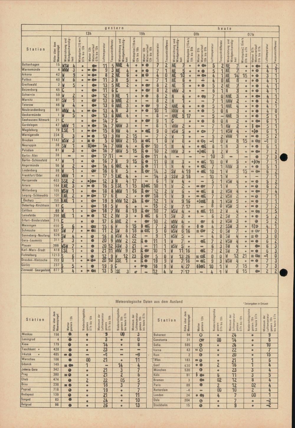 Täglicher Wetterbericht des Meteorologischen Dienstes der Deutschen Demokratischen...