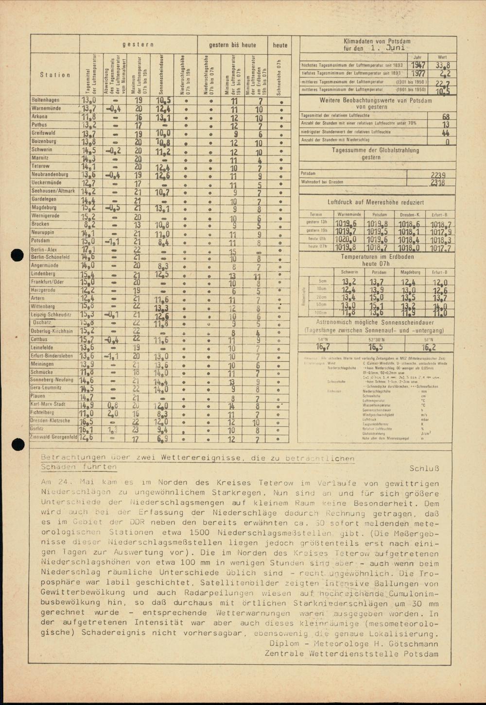 Täglicher Wetterbericht des Meteorologischen Dienstes der Deutschen Demokratischen...