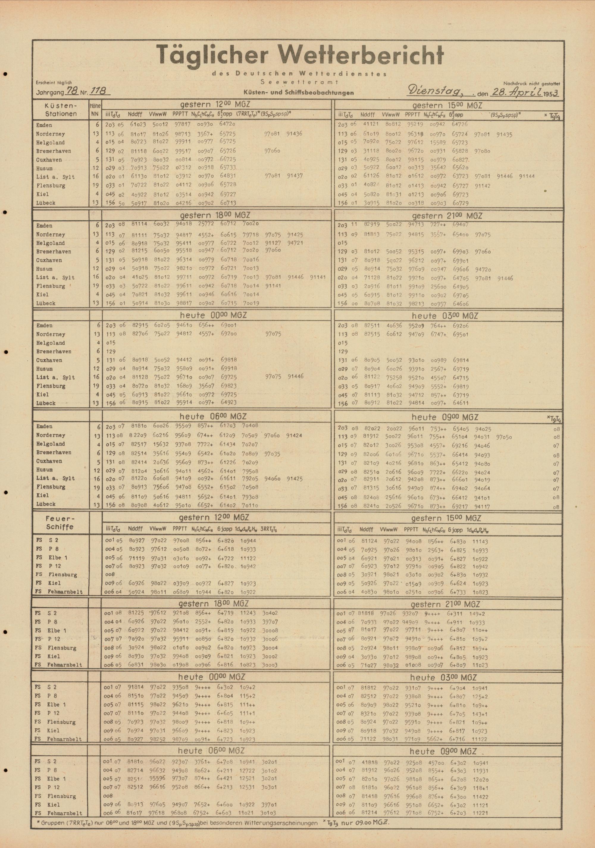 Täglicher Wetterbericht des Deutschen Wetterdienstes, Seewetteramt