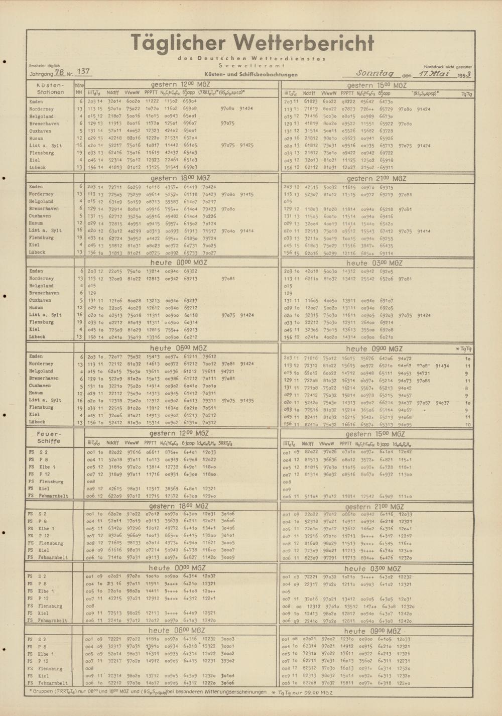Täglicher Wetterbericht des Deutschen Wetterdienstes, Seewetteramt