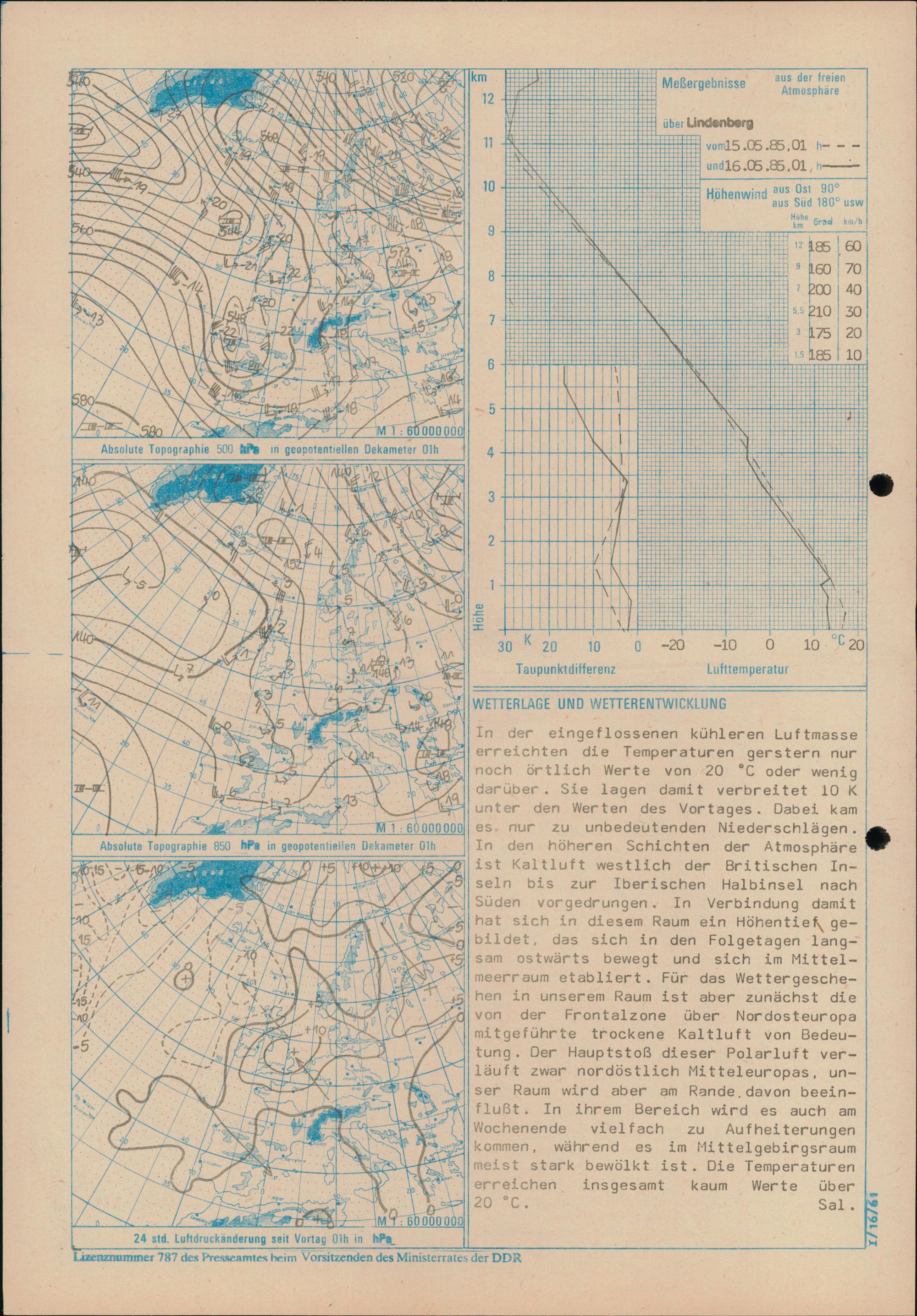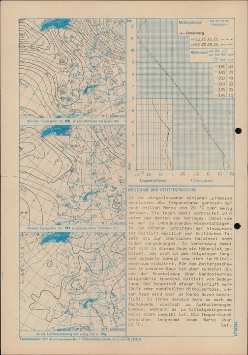 Täglicher Wetterbericht des Meteorologischen Dienstes der Deutschen Demokratischen...