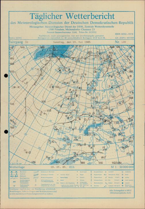 Täglicher Wetterbericht des Meteorologischen Dienstes der Deutschen Demokratischen...