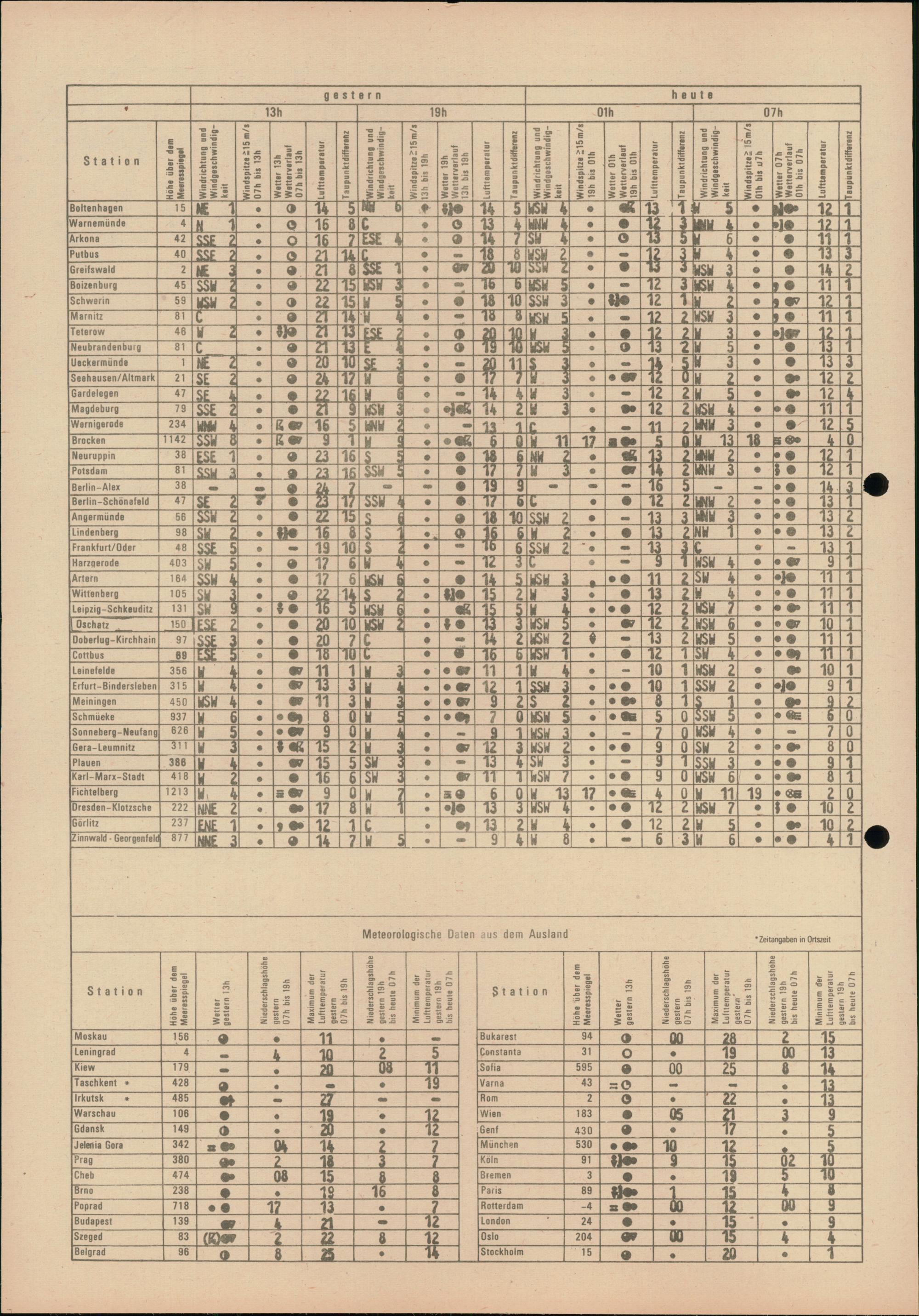 Täglicher Wetterbericht des Meteorologischen Dienstes der Deutschen Demokratischen...