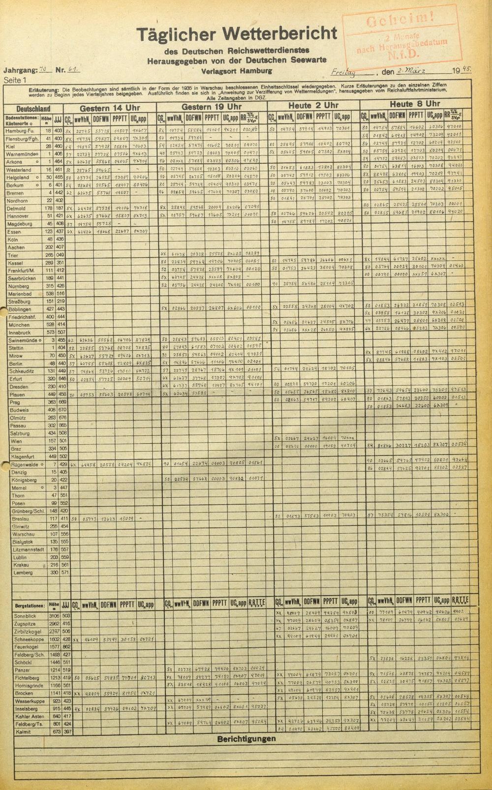 Täglicher Wetterbericht des deutschen Reichswetterdienstes