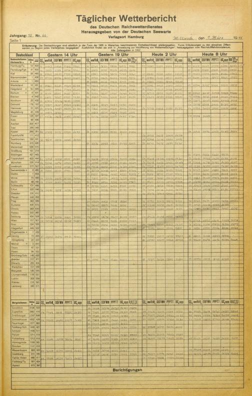 Täglicher Wetterbericht des deutschen Reichswetterdienstes