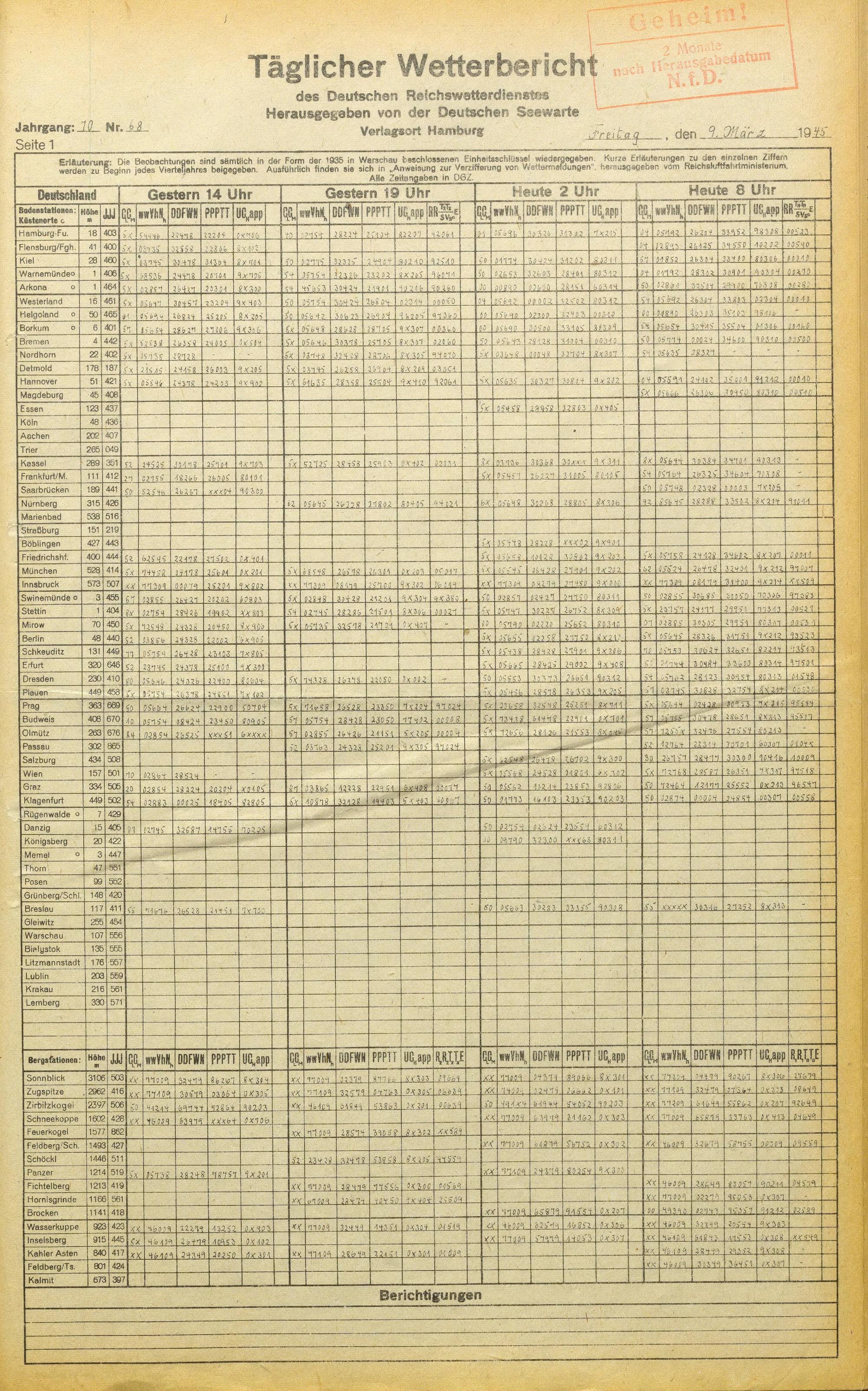Täglicher Wetterbericht des deutschen Reichswetterdienstes
