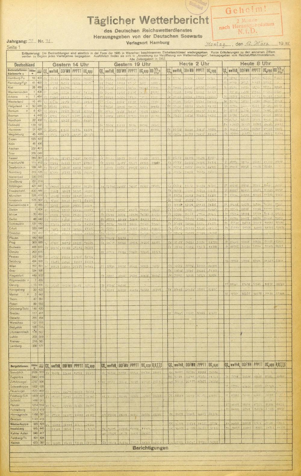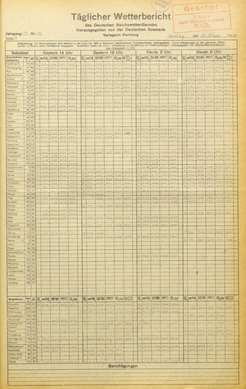 Täglicher Wetterbericht des deutschen Reichswetterdienstes