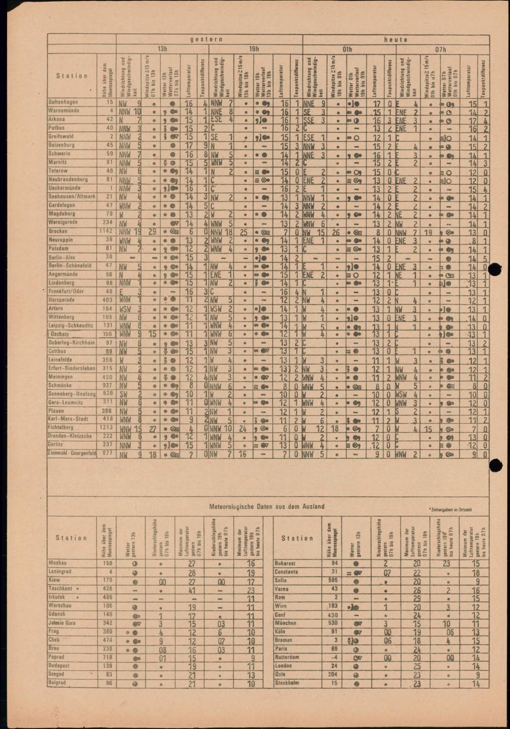 Täglicher Wetterbericht des Meteorologischen Dienstes der Deutschen Demokratischen...