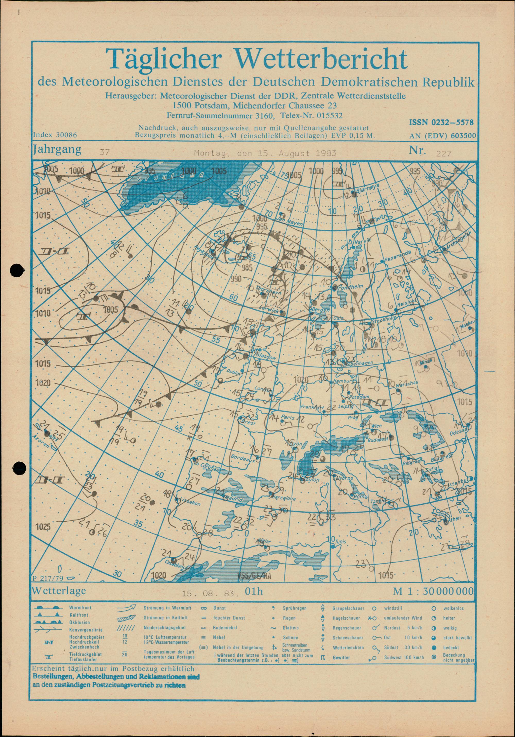 Täglicher Wetterbericht des Meteorologischen Dienstes der Deutschen Demokratischen...