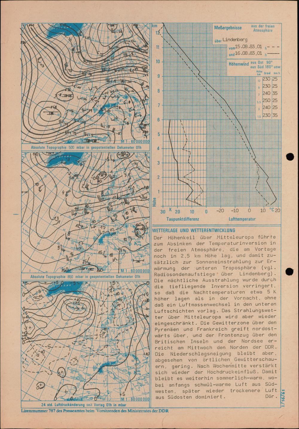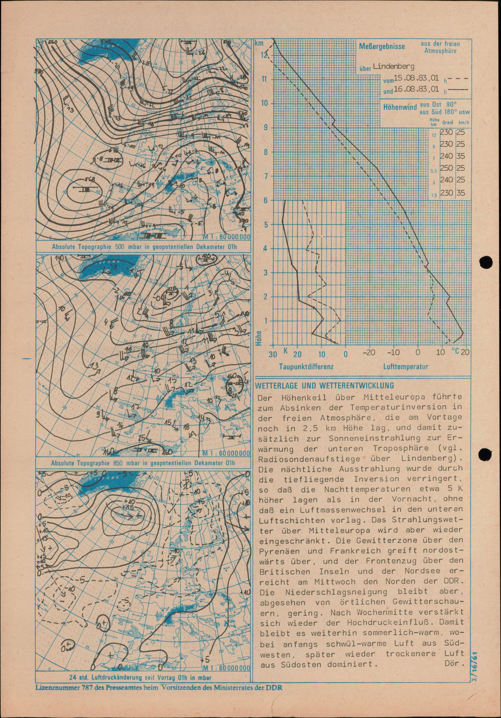 Täglicher Wetterbericht des Meteorologischen Dienstes der Deutschen Demokratischen...