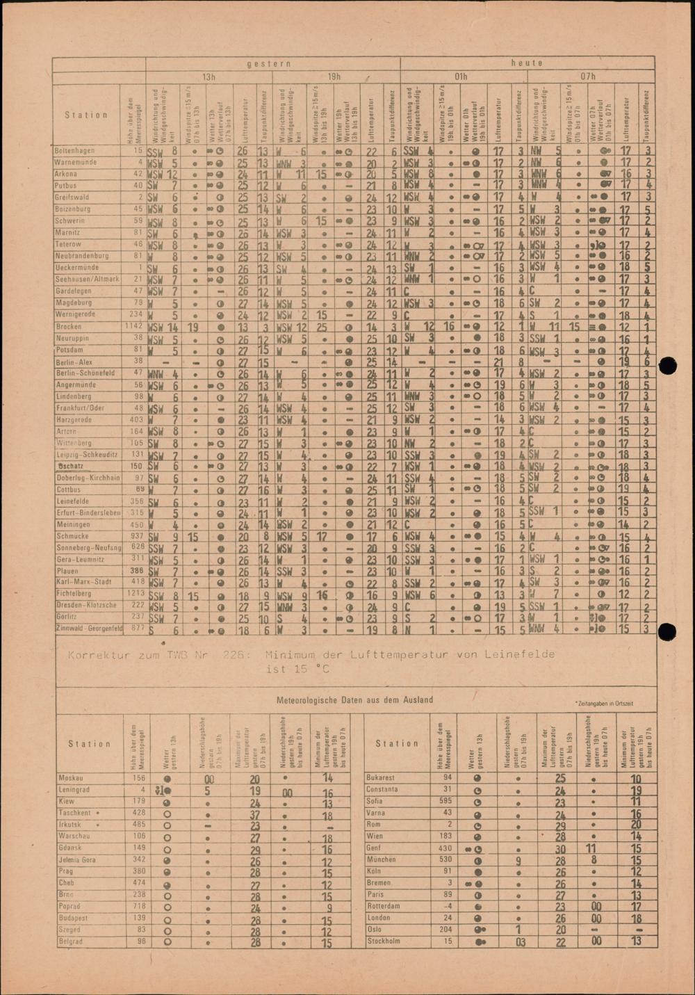 Täglicher Wetterbericht des Meteorologischen Dienstes der Deutschen Demokratischen...