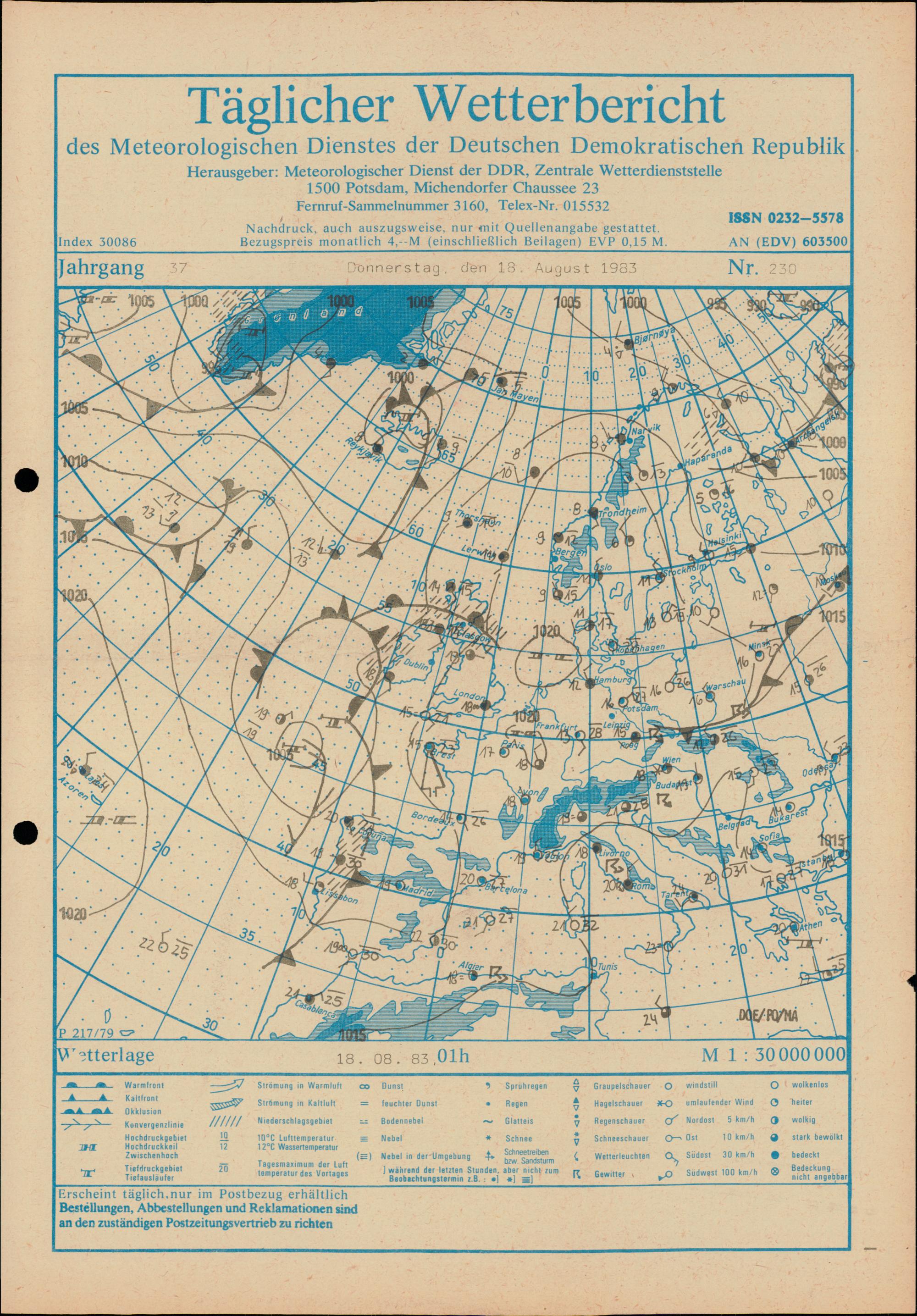 Täglicher Wetterbericht des Meteorologischen Dienstes der Deutschen Demokratischen...