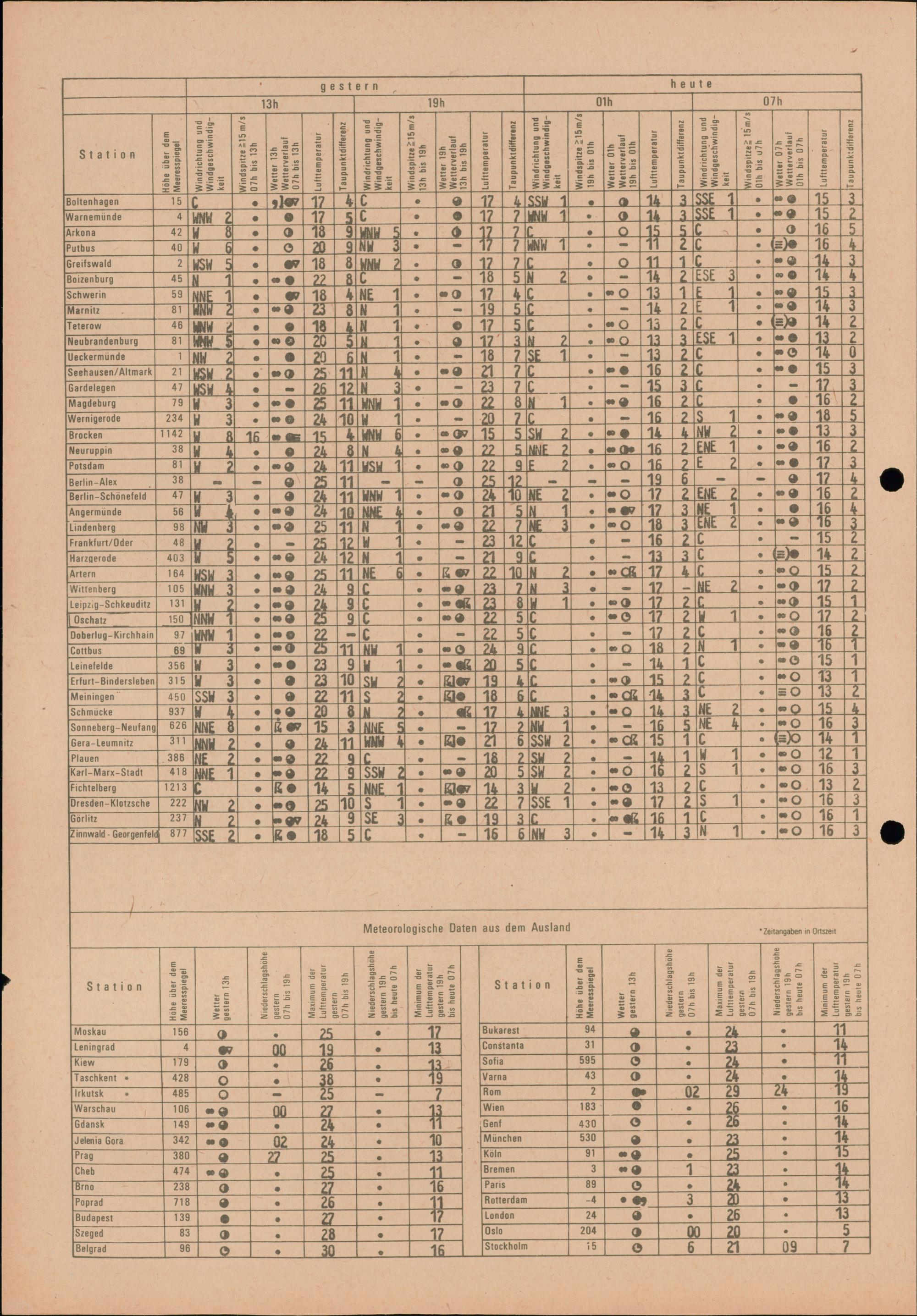 Täglicher Wetterbericht des Meteorologischen Dienstes der Deutschen Demokratischen...