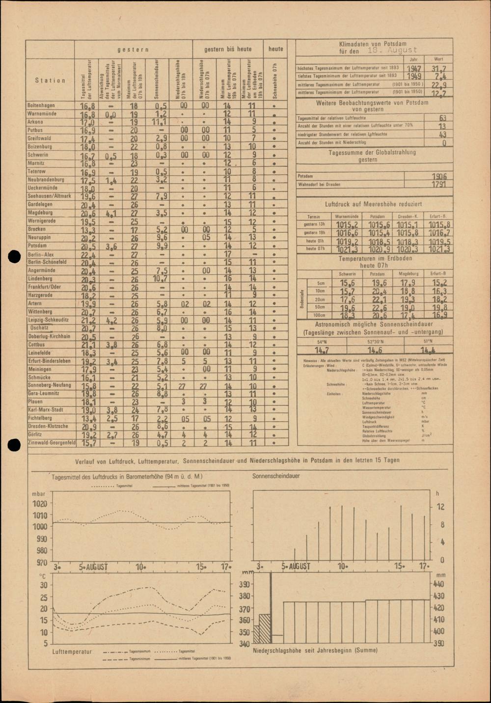Täglicher Wetterbericht des Meteorologischen Dienstes der Deutschen Demokratischen...