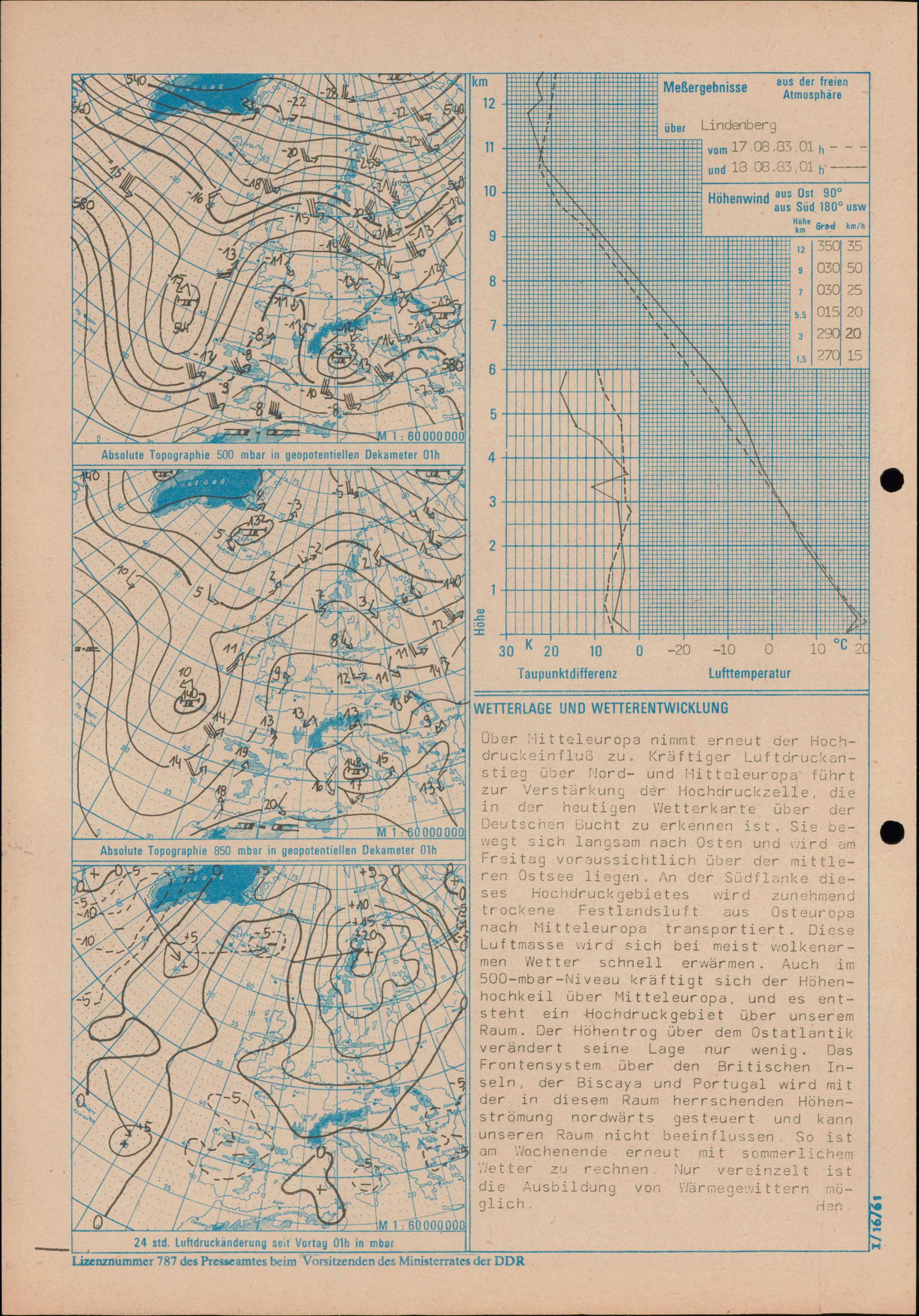 Täglicher Wetterbericht des Meteorologischen Dienstes der Deutschen Demokratischen...
