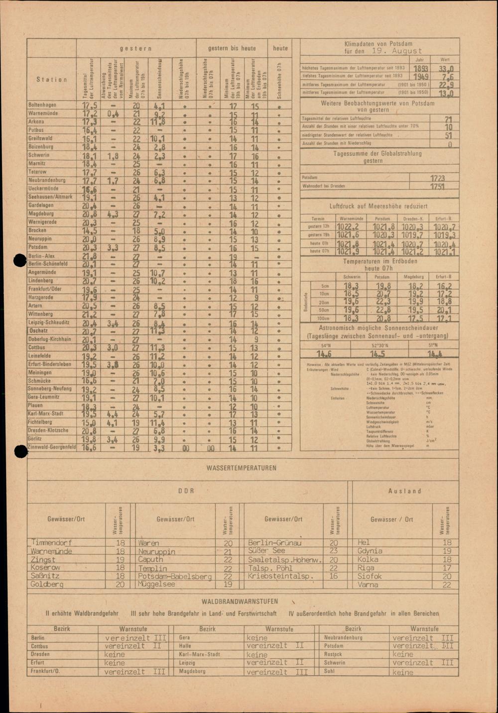 Täglicher Wetterbericht des Meteorologischen Dienstes der Deutschen Demokratischen...