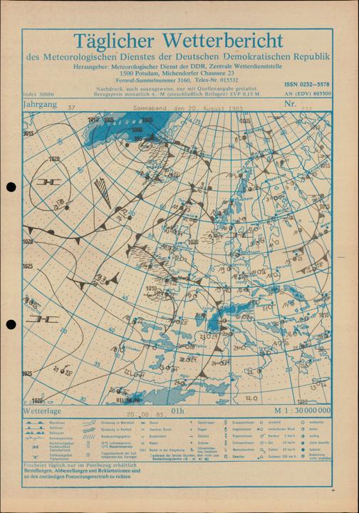 Täglicher Wetterbericht des Meteorologischen Dienstes der Deutschen Demokratischen...