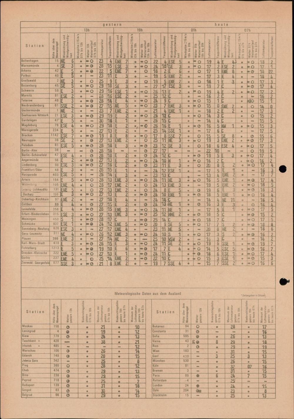 Täglicher Wetterbericht des Meteorologischen Dienstes der Deutschen Demokratischen...