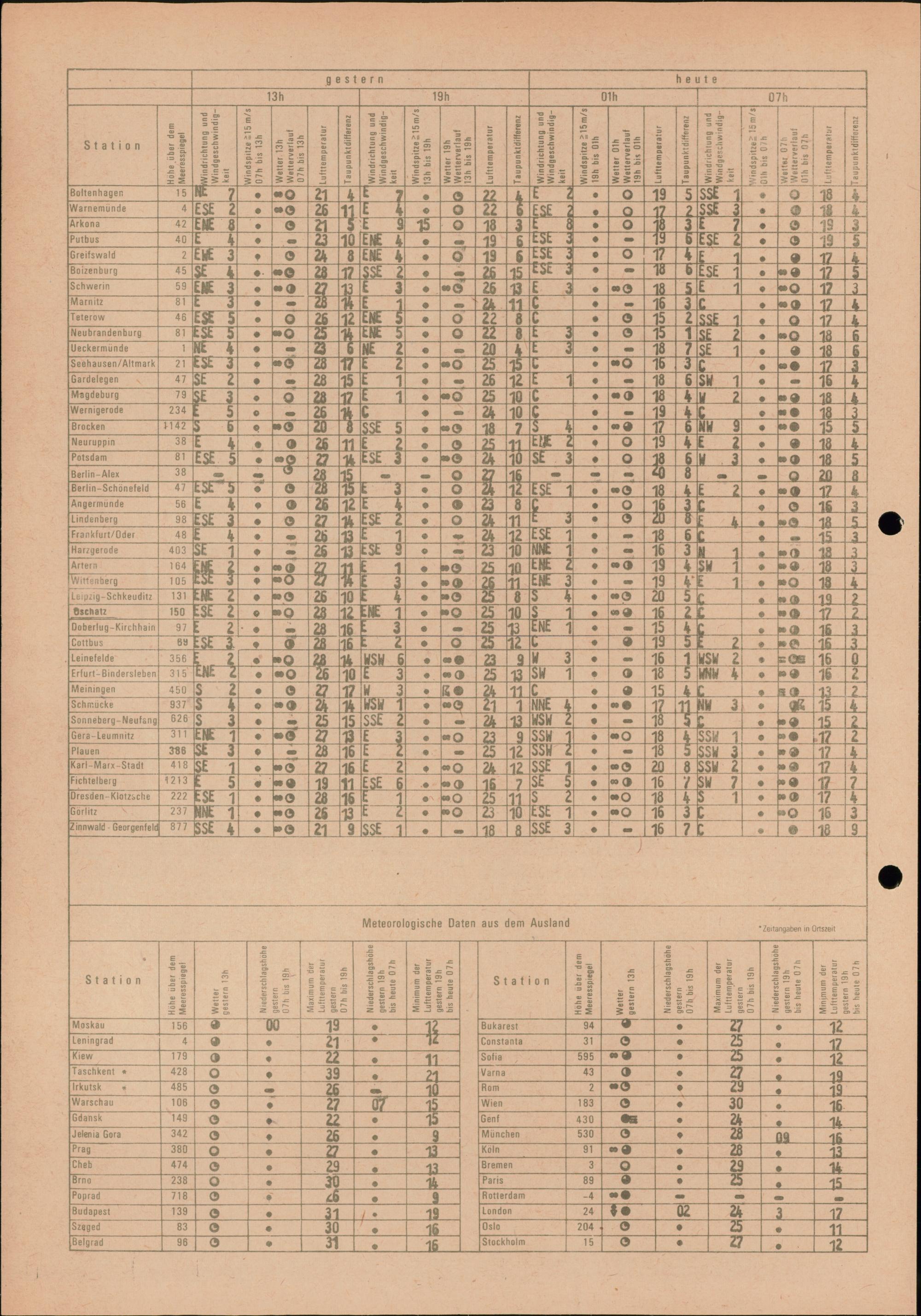 Täglicher Wetterbericht des Meteorologischen Dienstes der Deutschen Demokratischen...