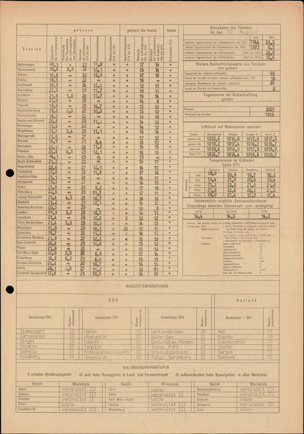 Täglicher Wetterbericht des Meteorologischen Dienstes der Deutschen Demokratischen...