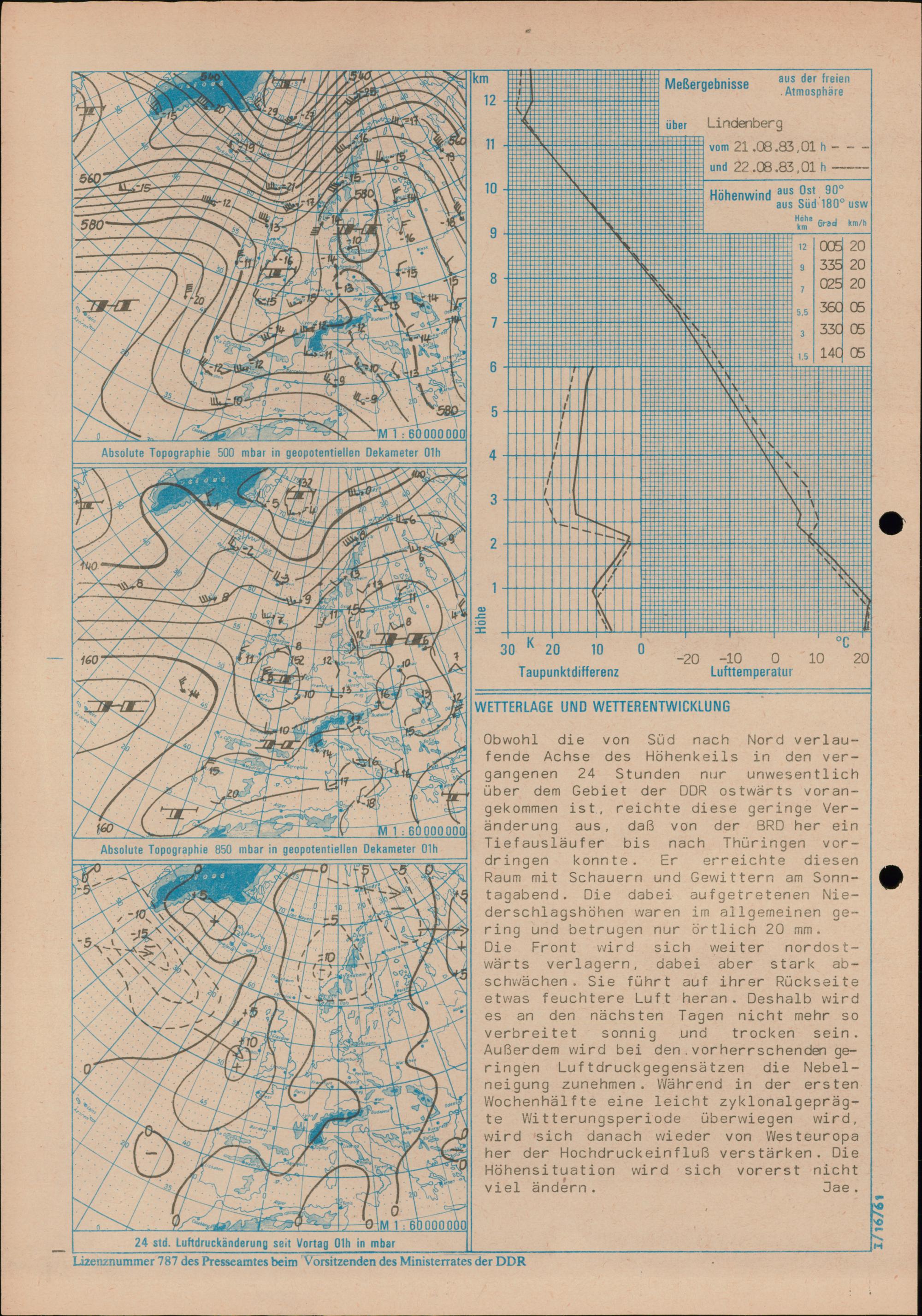 Täglicher Wetterbericht des Meteorologischen Dienstes der Deutschen Demokratischen...