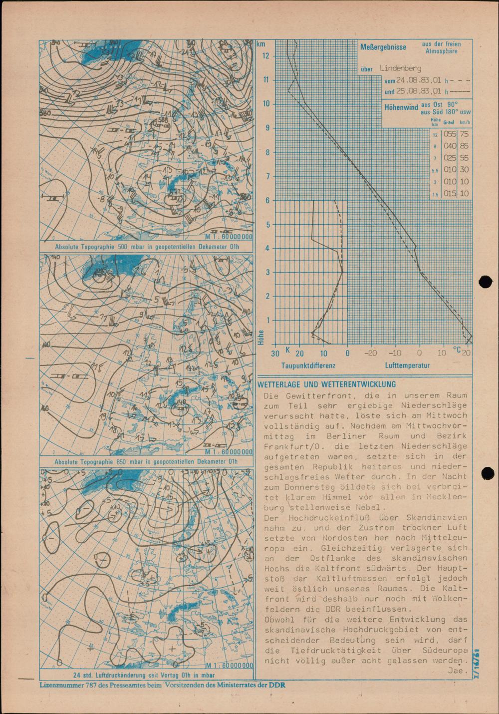 Täglicher Wetterbericht des Meteorologischen Dienstes der Deutschen Demokratischen...