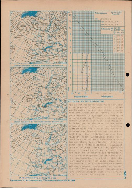 Täglicher Wetterbericht des Meteorologischen Dienstes der Deutschen Demokratischen...