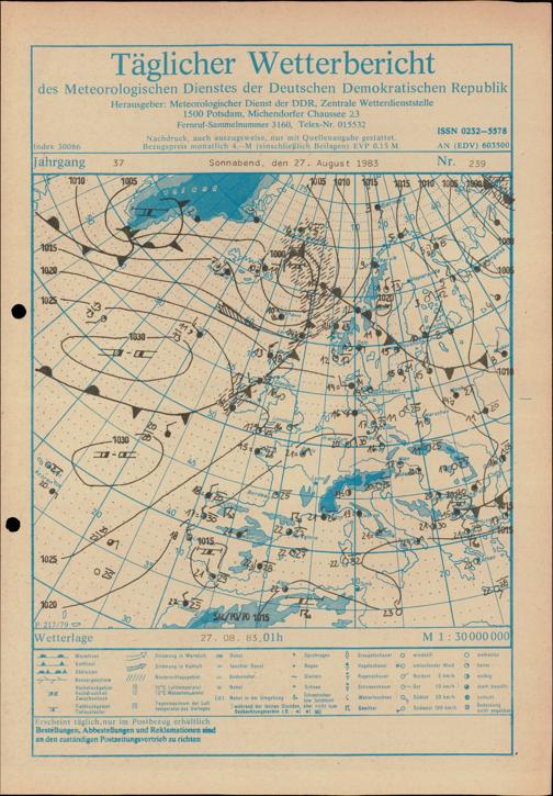 Täglicher Wetterbericht des Meteorologischen Dienstes der Deutschen Demokratischen...