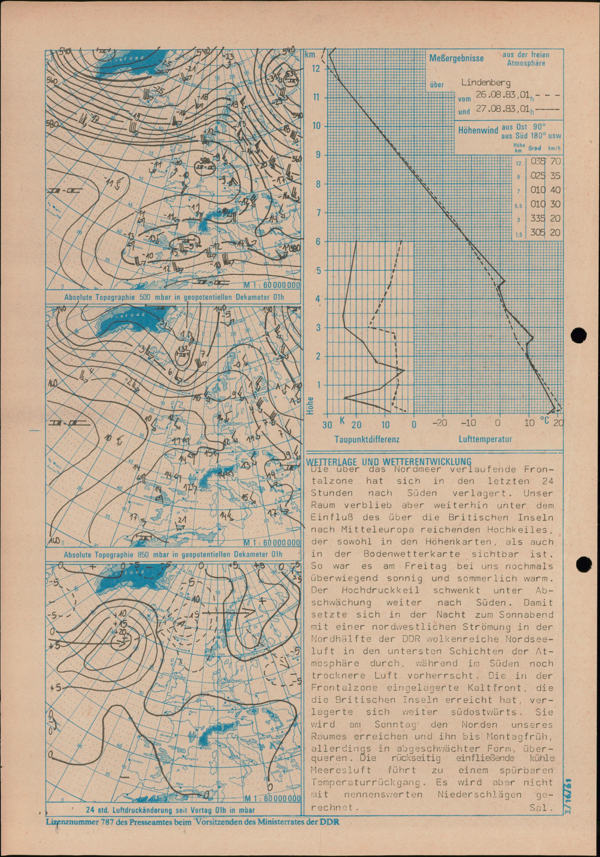Täglicher Wetterbericht des Meteorologischen Dienstes der Deutschen Demokratischen...