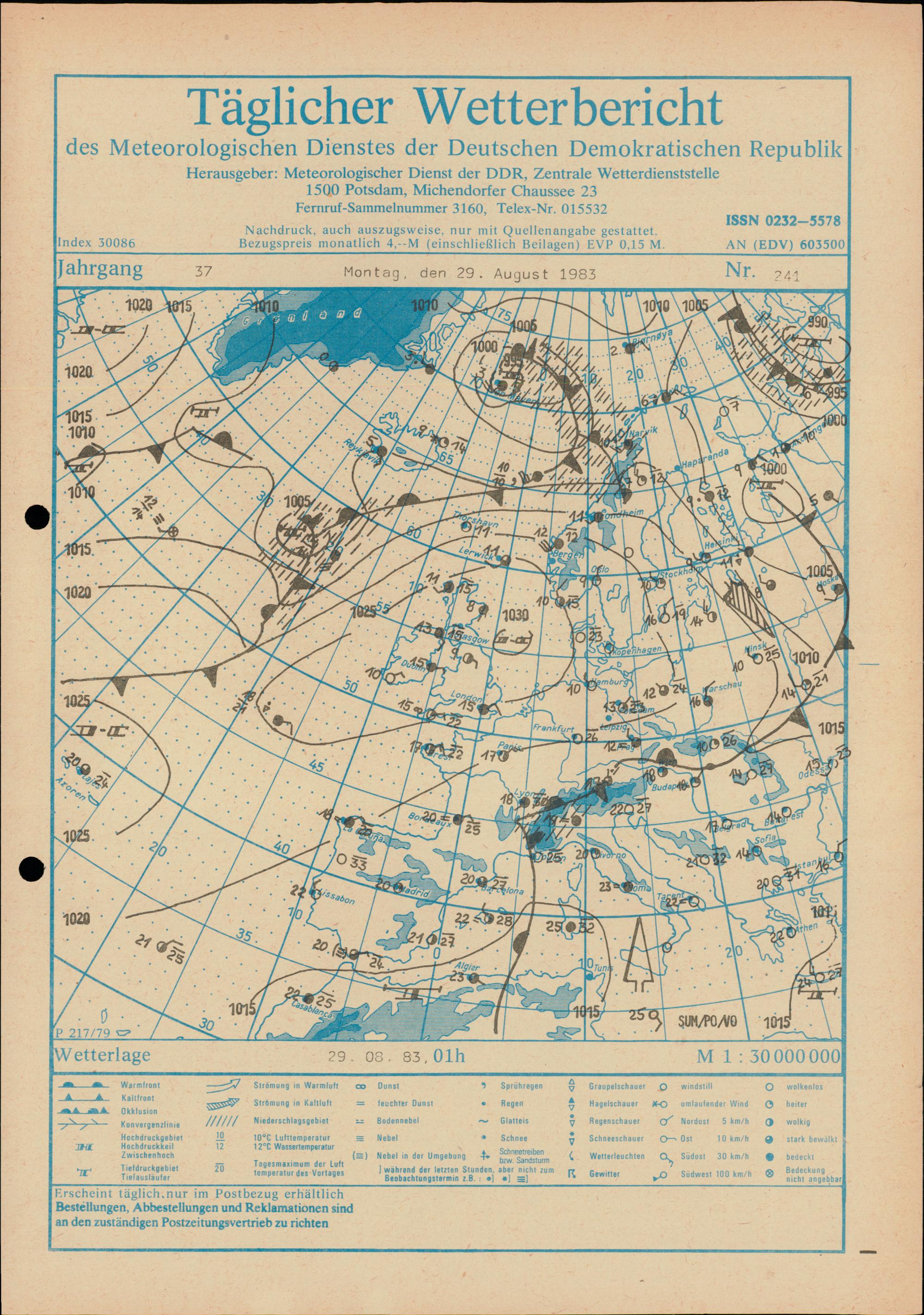 Täglicher Wetterbericht des Meteorologischen Dienstes der Deutschen Demokratischen...