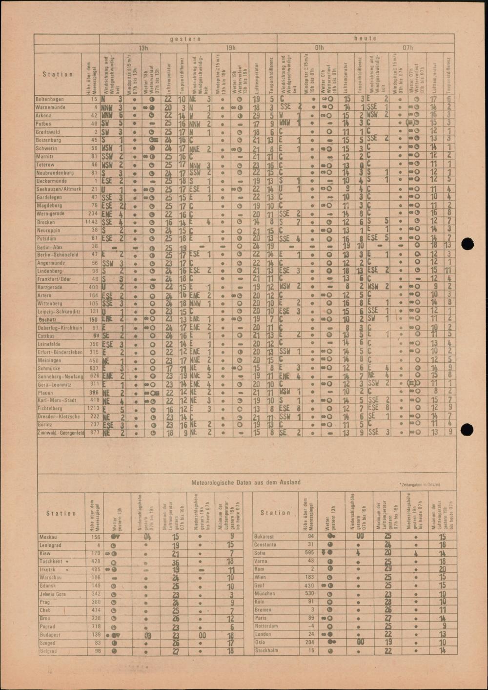 Täglicher Wetterbericht des Meteorologischen Dienstes der Deutschen Demokratischen...