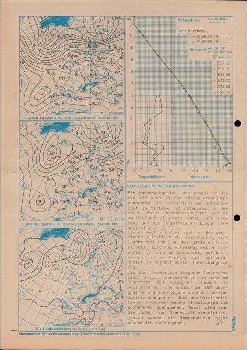 Täglicher Wetterbericht des Meteorologischen Dienstes der Deutschen Demokratischen...