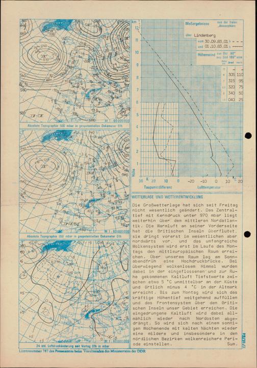 Täglicher Wetterbericht des Meteorologischen Dienstes der Deutschen Demokratischen...